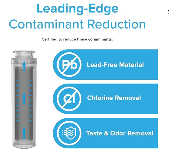 - Advanced Filtration: Reduces lead, chlorine taste and odor, cysts, benzene, and other contaminants to improve water quality.