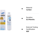 Elevate your water quality with the Samsung DA29-00020B, DA29-00020A, HAF-CIN EXP Premium Genuine Refrigerator Water Filter, ensuring that every sip is a refreshing experience. This 1 Pack filter is designed to deliver clean, clear water that not only looks great but also tastes exceptional. Safeguard your family from potentially harmful contaminants as this premium water filter removes over 99% of impurities, including lead, mercury, chlorine, DEET, pharmaceuticals, herbicides, and pesticides. Crafted with a high-grade carbon block, this refrigerator water filter goes beyond standard filtration, providing optimal protection for your refrigerator by preventing potential sediment build-up. Avoid the risk of water damage to your fridge and home, as only Samsung Genuine Filters are precisely engineered to work seamlessly with your Samsung refrigerator. The ultra-slim design ensures easy installation and long-lasting use, making maintenance a breeze. Reducing 33 contaminants, this premium water filter goes above and beyond, removing up to 80% more impurities than other leading compatible filters. Enjoy the peace of mind that comes with more than 99% lead removal and filtration of impurities for up to 6 months or 300 gallons of water. Certified to meet NSF standards 42, 53, and 401, this premium refrigerator water filter prioritizes your family’s safety by removing up to 99% of select chemicals, pharmaceuticals, pesticides, herbicides, and heavy metals. Embrace the benefits of a Premium Genuine Refrigerator Water Filter, designed specifically for Samsung French Door and Side-by-Side refrigerators, providing your household with safe, fresh-tasting water.