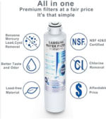 two thisngs about filter i don like not filters fault but Samsung finds it okay to place filter housing on bottom of thr refirgrtstor difficult for older person to remove and install have to use pliers to get leverage to remobe and install filter